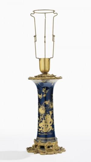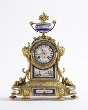 Bronze doré et plaques de porcelaine émaillée à décor d'un putto...