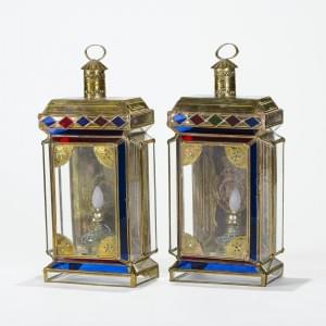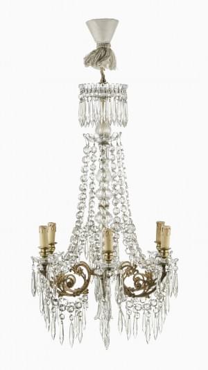 Pampilles de verre et bronze doré, H 90 cm, D 48 cm