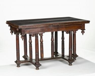 Double piètement tripode, avec allonges, acajou, laiton, 72x260x...