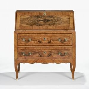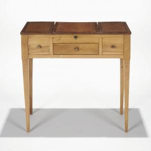 Un abattant et trois tiroirs, bois fruitier et filets de laiton,...