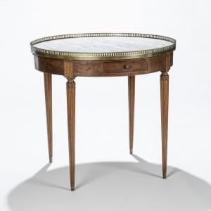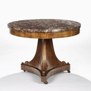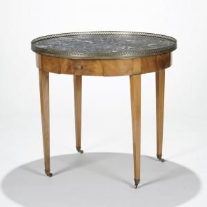 Bois fruitier, marbre rouge, H 73 cm et D 97 cm