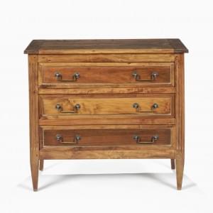 Trois tiroirs et trois abattants, bois fruitier, 76x76x43