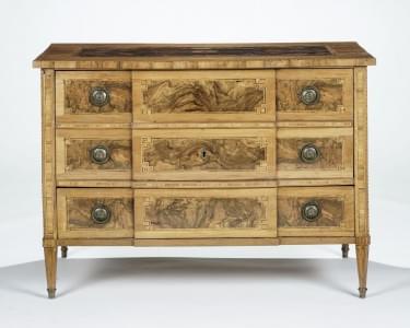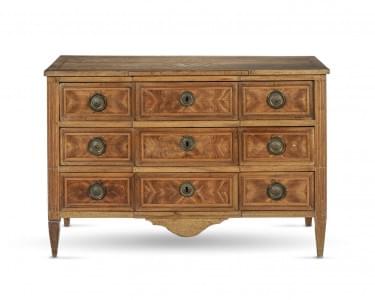 Trois tiroirs, bois de placage marqueté en feuilles dans des enc...