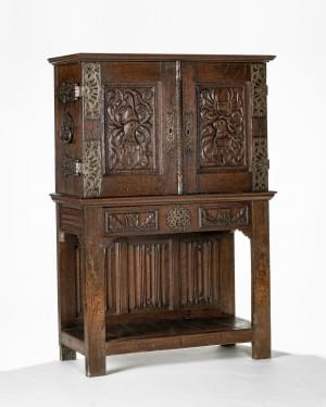 Deux vantaux sculptés d'armoiries et un tiroir, chêne et fer for...