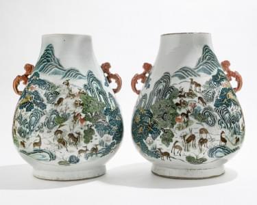794. Paire de grands vases de forme hu aux 100 daims, Chine, dynastie...
