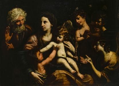La Sainte Famille avec le petit saint Jean et trois anges, huile...