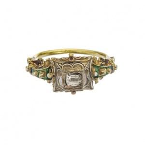 210. Bague émaillée ouvragée sertie d'un diamant en table