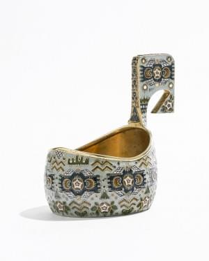413. Kovsh de style panslave à décor de lunes et vagues stylisées en...