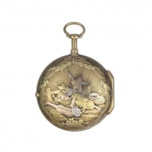 183. Romilly à Paris, montre oignon ciselée à décor d'instruments de...