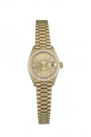 Cadran et aiguilles dorés, index à point serti de diamants, date...