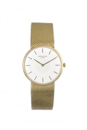 Cadran guilloché doré, aiguilles dorées, chiffres arabes noirs,...