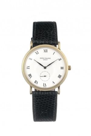 Boîtier guilloché, cadran émaillé blanc, aiguilles bleutées, chi...