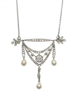 211. Collier à motif de guirlande sertie d'un diamant taille ancienne...