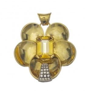 236. Pendentif camélia stylisé serti d'une citrine (env. 18 ct) surmo...