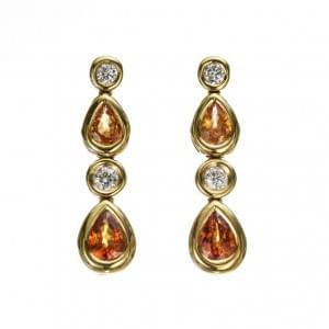 240. Boucles d'oreilles serties d'une ligne de saphirs orange taille...