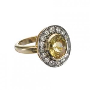 241. Bague sertie d'un saphir jaune taille ovale (env. 2.5 ct) entour...
