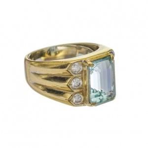 244. Bague sertie d'une aigue-marine (env. 3.8 ct) épaulée de six dia...