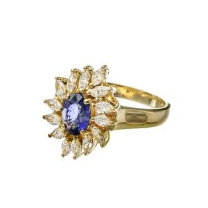 246. Bague marguerite sertie d'un saphir taille ovale (env. 1 ct) ent...