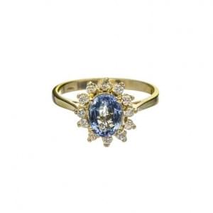 247. Bague marguerite sertie d'un saphir (env. 1.3 ct) entouré de dia...