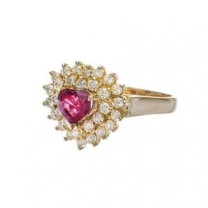 248. Bague sertie d'un rubis taille cœur (env. 1.3 ct) épaulé de diam...