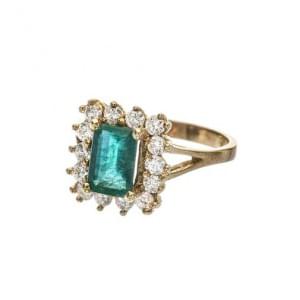 259. Bague sertie d'une émeraude taille rectangle (env. 2 ct) entouré...