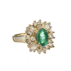 213. Bague sertie d'une émeraude ovale entourée de roses de diamants