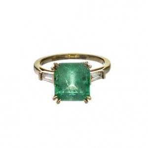 256. Bague sertie d'une émeraude taille rectangle (env. 5 ct) épaulée...