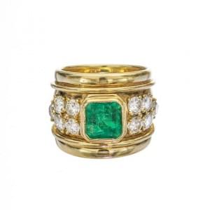 258. Bague bandeau sertie d'une émeraude carrée (env 1.8 ct) épaulée...