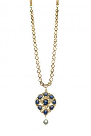 242. Collier retenant un motif serti d'un diamant épaulé de saphirs j...