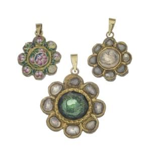 262. Ensemble de trois pendentifs fleur sertis de saphirs blancs et d...