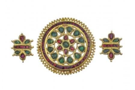 267. Pendentif rond serti d'émeraudes et de rubis en cabochon formant...