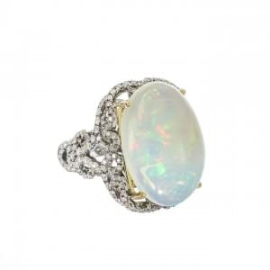 274. Bague sertie d'une opale (env. 15 ct) sur une monture ajourée se...