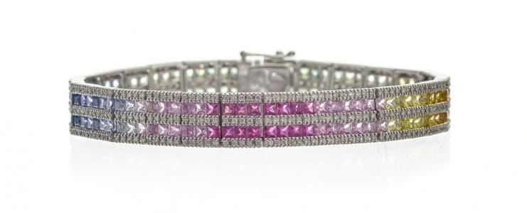 276. Bracelet de deux rangs de saphirs de couleurs taille princesse e...
