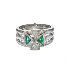 288. Bague sertie de deux diamants et deux émeraudes taille triangle...