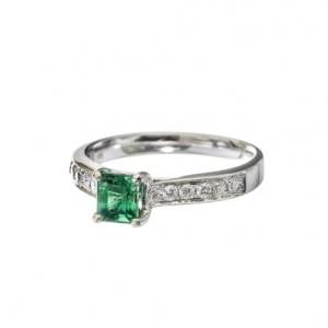 289. Bague sertie d'une émeraude carrée (env. 0.6 ct) sur une monture...