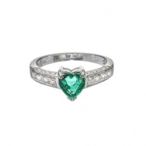291. Bague sertie d'une émeraude taille cœur (env. 0.7 ct) sur une mo...