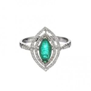 292. Bague sertie d'une émeraude taille marquise dans un double entou...