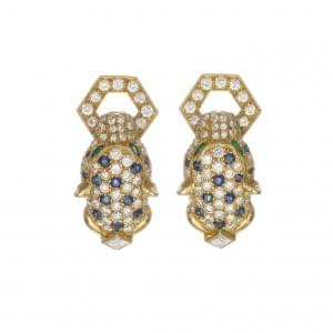 338. O.J. Perrin, paire de clips d'oreilles à motif de têtes de panth...