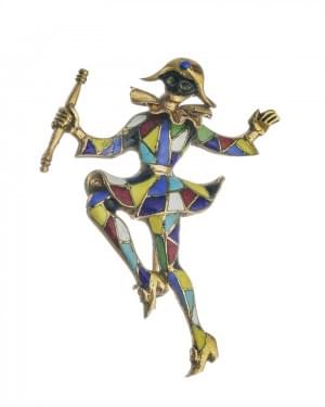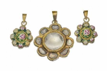 3129. Paire de pendants d'oreilles émaillés sertis de cristal de roche...