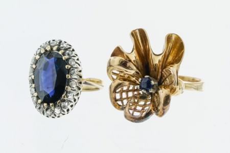 3102. Lot de deux bagues, l'une sertie d'un saphir synthétique ovale (...