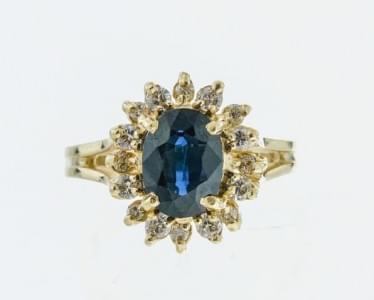 3109. Bague marguerite sertie d'un saphir (env. 1.2 ct) entouré de dia...