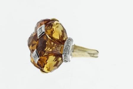 3115. Bague sertie de six citrines taille fantaisie épaulées de diaman...
