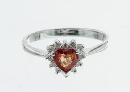 3117. Bague sertie d'un saphir orange taille cœur (env. 0.5 ct) entour...