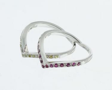 3123. Deux anneaux en chevron, l'un serti d'une ligne de rubis et l'au...