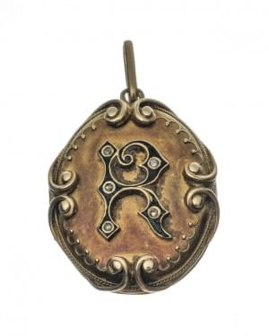 3124. Pendentif porte-photo monogrammé d'un R émaillé serti de roses d...