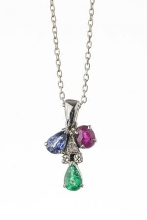 3125. Pendentif serti d'une émeraude, d'un saphir et d'un rubis rehaus...