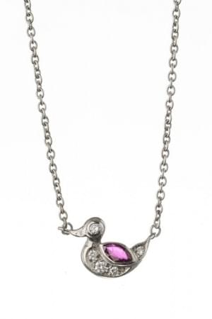 3134. Chaîne retenant un pendentif à motif de canard serti d'un rubis...