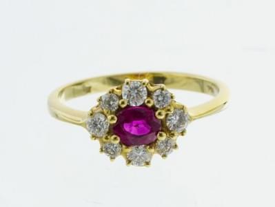 3137. Bague marguerite sertie d'un rubis taille ovale (env. 0.6 ct) en...