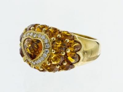 3139. Bague sertie d'une citrine en forme de cœur facetté entourée de...