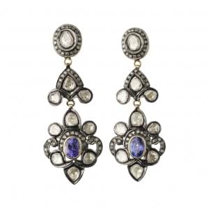 3140. Paire de pendants d'oreilles sertis de tanzanites entourées et s...